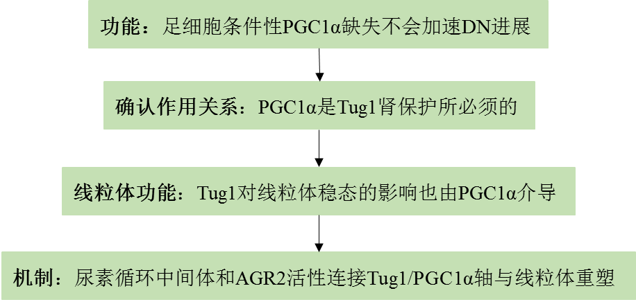 总之,这些结果表明Pgc1α是Tug1保护线粒体和减缓DN进展所必须的。