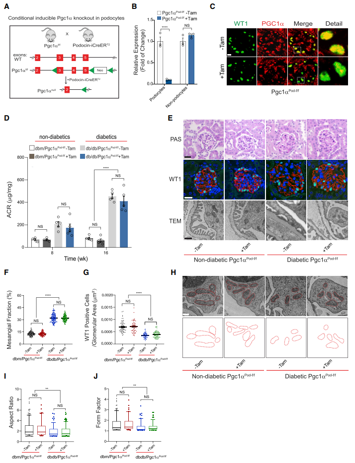 图1足细胞中条件性和诱导性PGC1α的缺失不会加重DN的进展